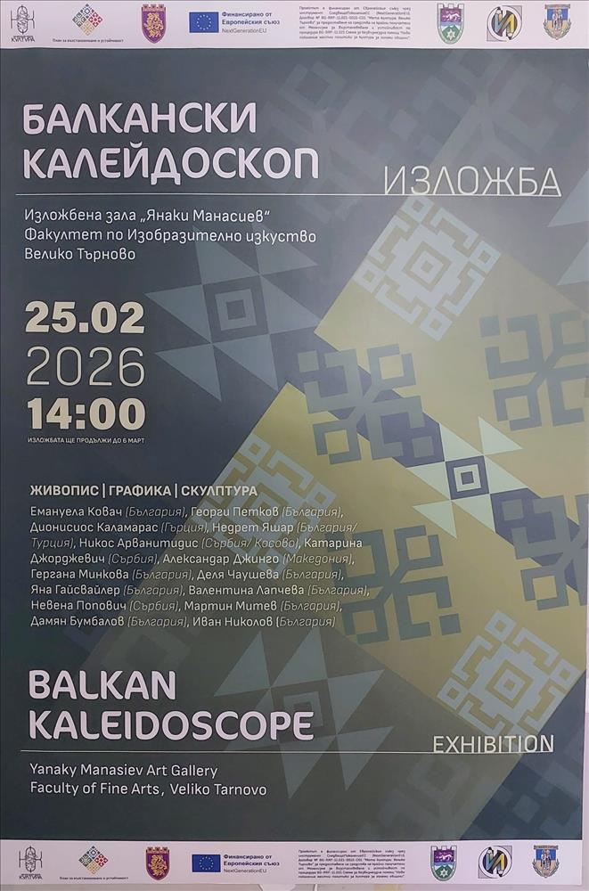 Prof. Dr. Nedret Yaşar, Bugaristan Veliko Tırnovo “St. Kiril ve Metodi” Üniversitesi Güzel Sanatlar Fakültesi tarafından 15–25 Şubat 2026 tarihleri arasında düzenlenen “Balkan Inspiration” Uluslararası Çalıştayı ve “Balkan Kaleidoscope” Sergisi’ne katılmıştır. Çalıştay süresince litografi tekniğiyle ürettiği eserler, Veliko Tırnovo “St. Kiril ve Metodi” Üniversitesi Güzel Sanatlar Fakültesi “Yanaki Manasiev” Sergi Salonu’nda sergilenmektedir.