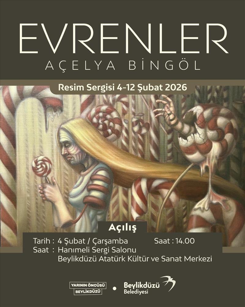 Resim Bölümü Öğrencimiz Açelya Bingöl’ün “Evrenler” isimli kişisel sergisi 4–12 Şubat 2026 tarihleri arasında Beylikdüzü Atatürk Kültür ve Sanat Merkezi Hanımeli Sergi Salonunda sanat izleyicisini ağırladı. ‘Evreler’ sergisi, genç sanatçının kendi içsel yolculuğunu tuvallere taşıdığı seçkisiyle, alternatif bir bakış açısı sunmuştur. Öğrencimizi tebrik eder, başarılarının devamını dileriz…
